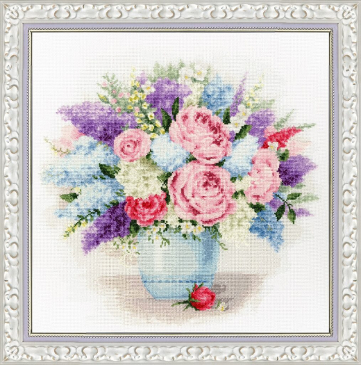Чудесный нежный букет, как кусочек весны, готов застыть на канве под вашими умелыми руками. Раскрасьте яркими красками свою мечту, почувствуйте аромат сиреневых цветов, и украшайте светлыми сюжетами окружающий мир.